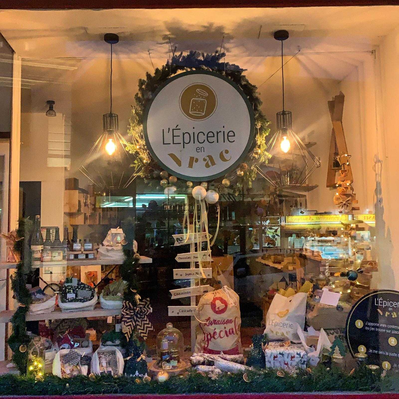 Vitrine de Noël pour une épicerie en vrac